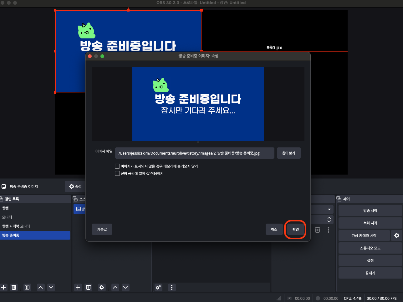 ⭐️방송 준비중 화면 세팅하기