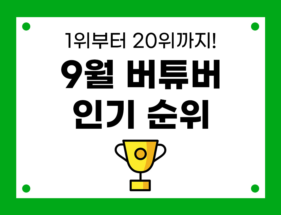 9월 월간 버튜버 인기 순위를 알아보겠습니다! (월간 인기차트는 최근 30일 이내에 등록된 영상의 조회수와 좋아요수를 기준으로 선정됩니다.)