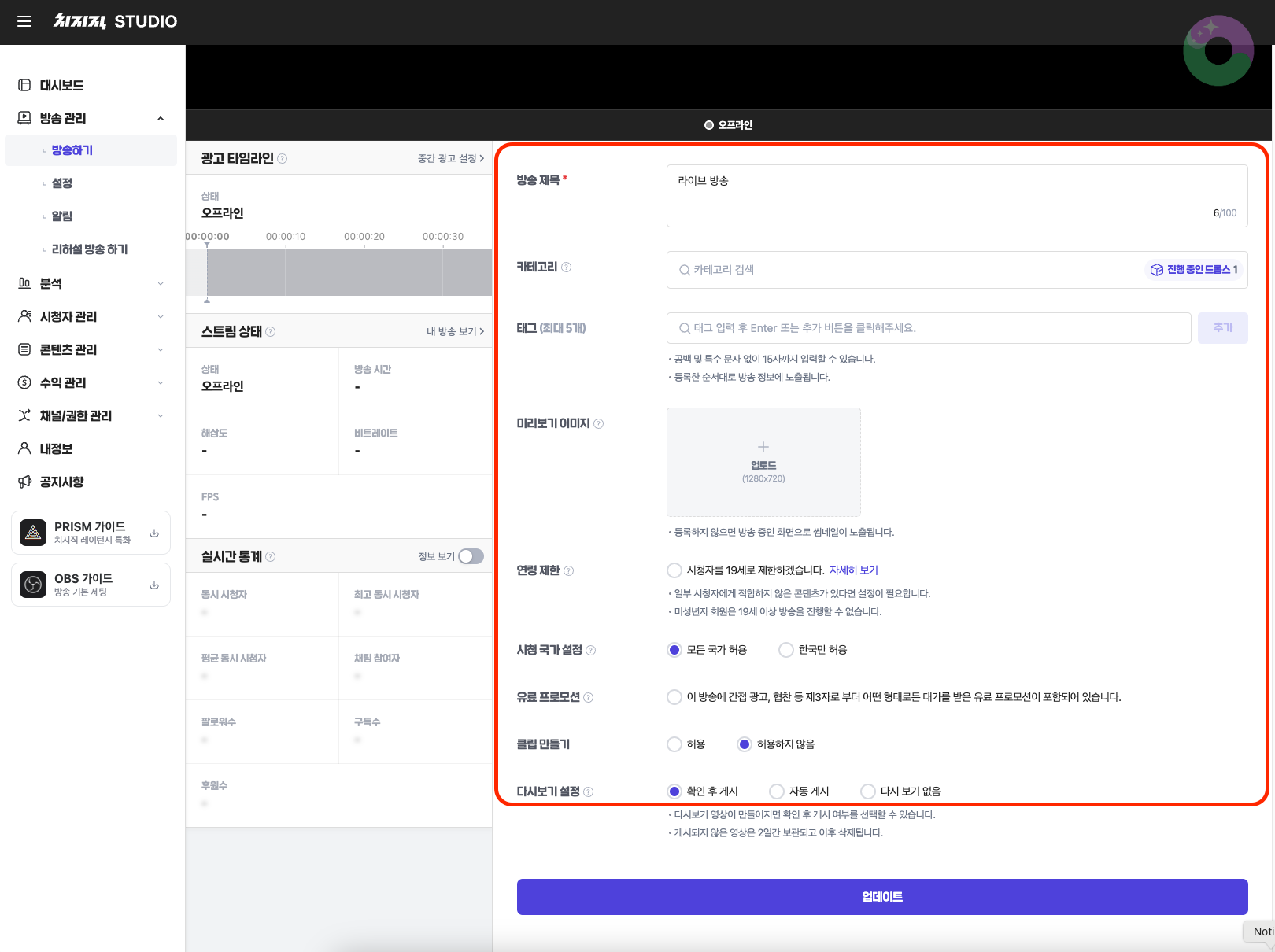 그리고 나서 방송에 대한 기본적인 정보를 적어줍니다.