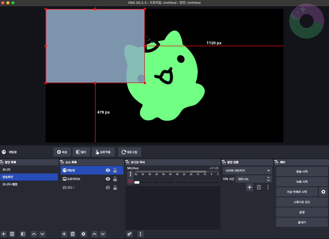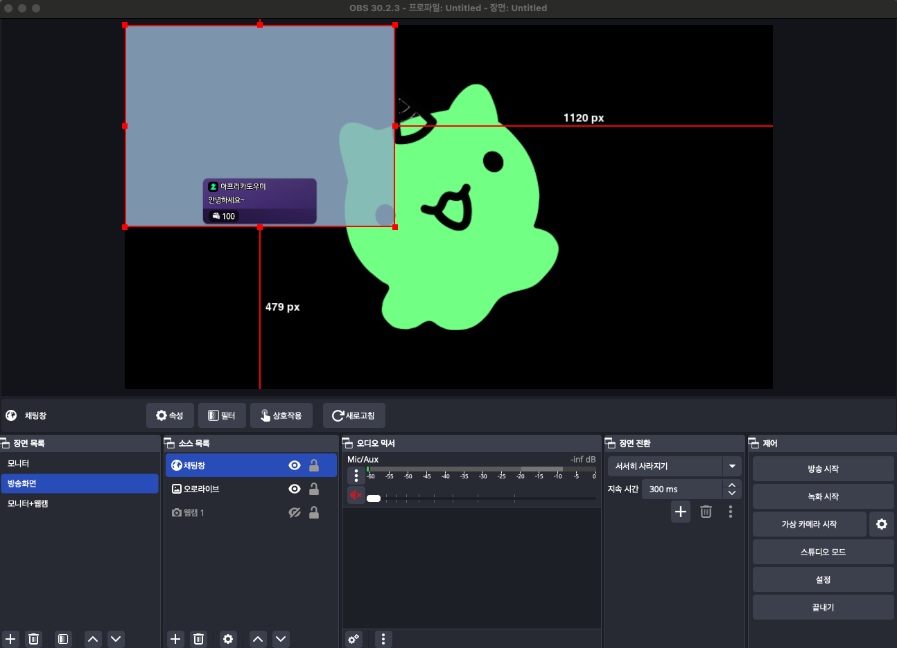 그럼 이렇게 OBS 화면에서 잘 나오는 것을 확인할 수 있습니다!
