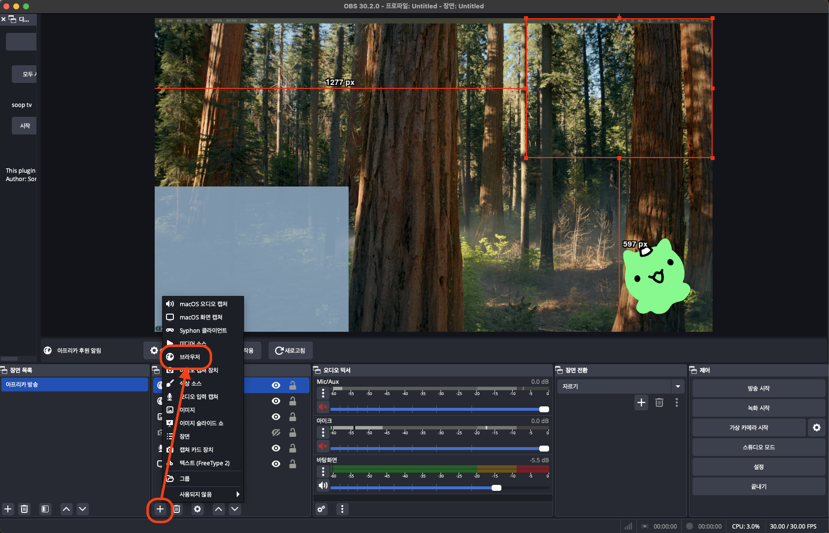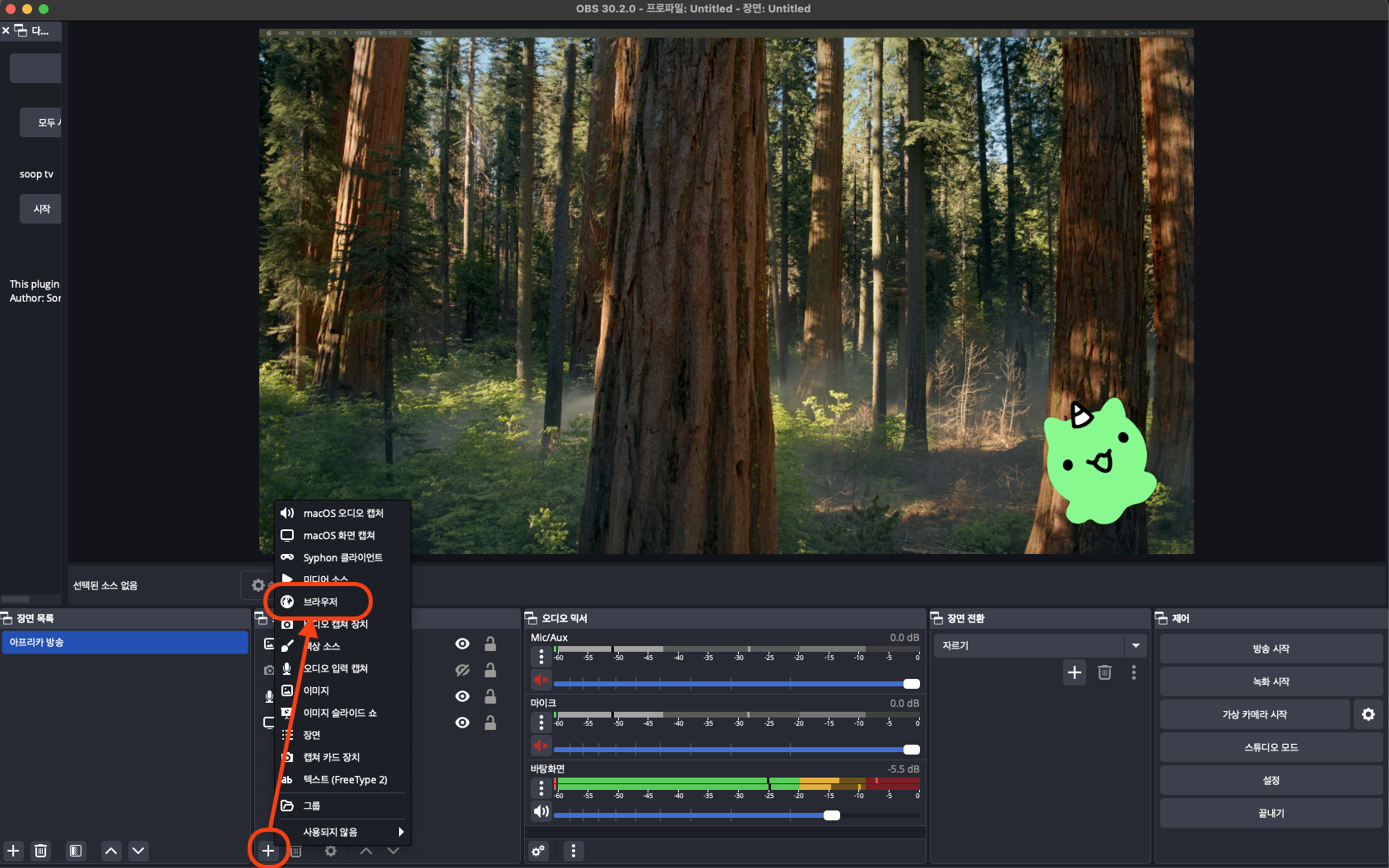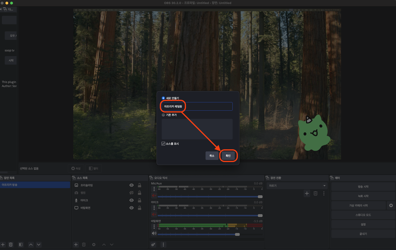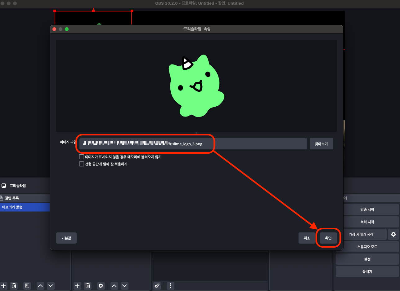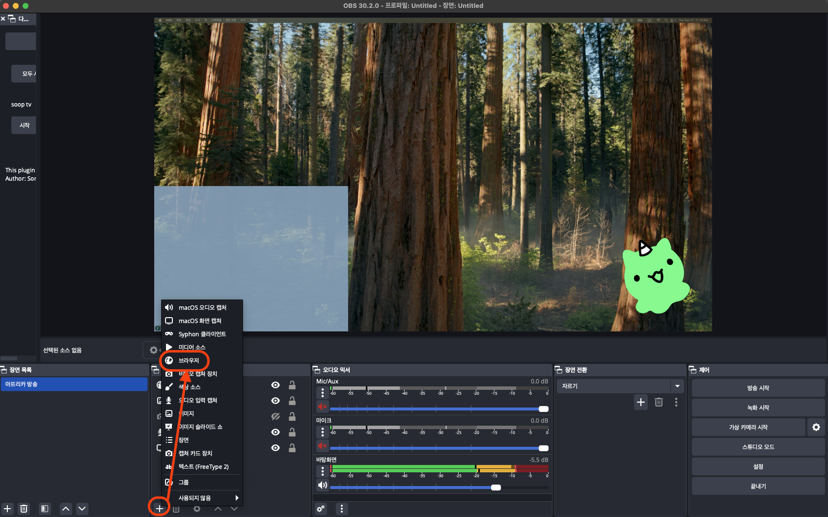 OBS에서 다시 한번 브라우저를 추가해 주고