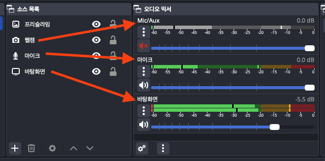 다시 소스목록에서 + 👉 오디오 입력 캡쳐