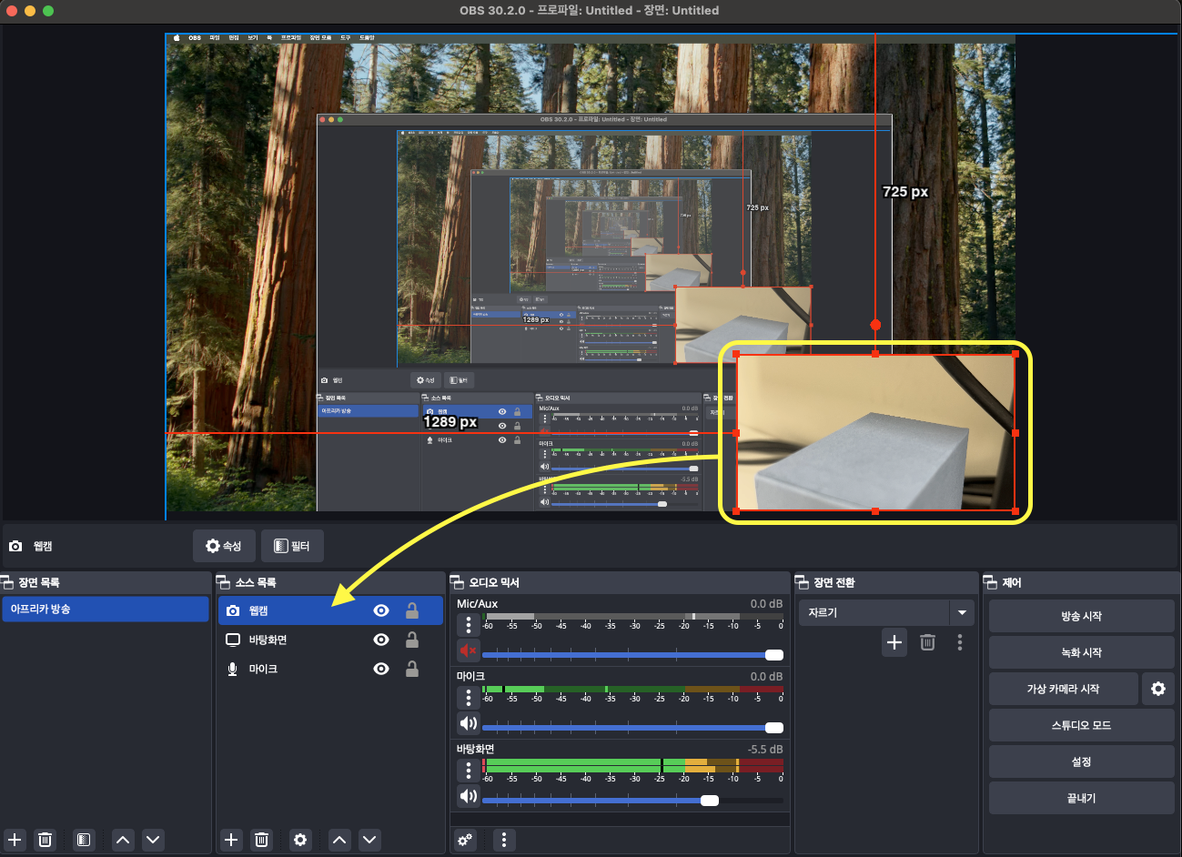 OBS 소스 목록에서