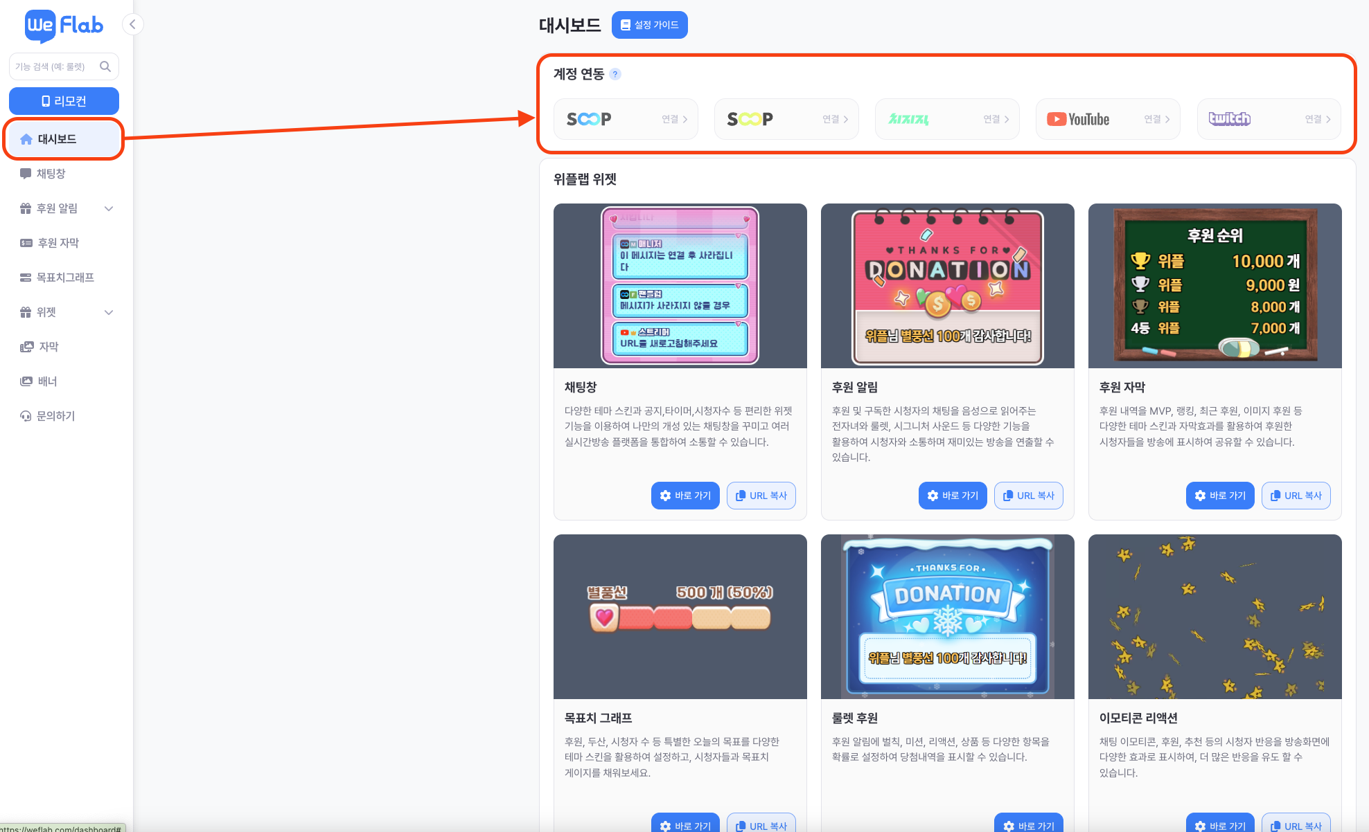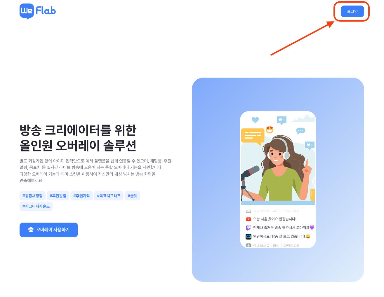 인터넷방송 통합채팅 후원알림 오버레이 서비스