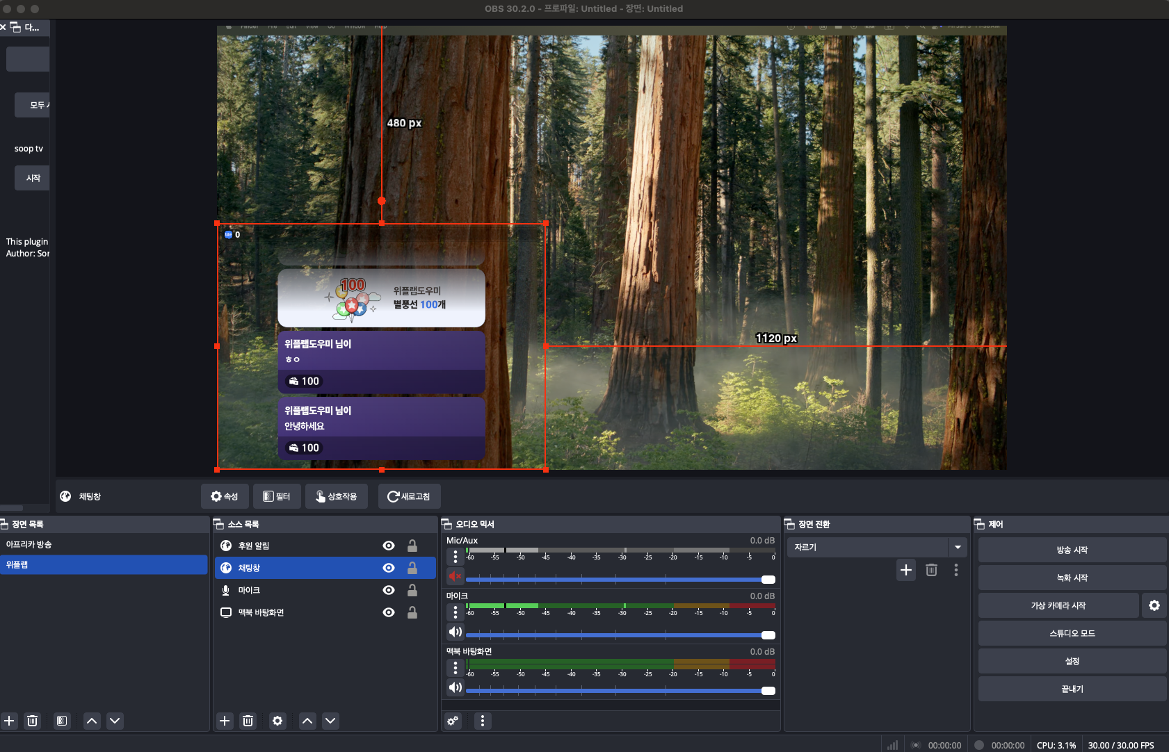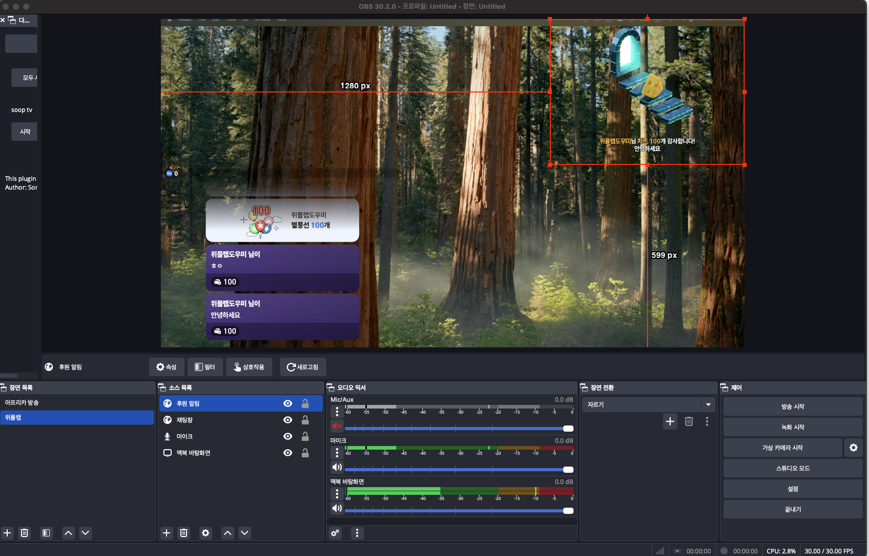 그럼 후원 자막이 잘 나오는 것을 확인할 수 있어요.