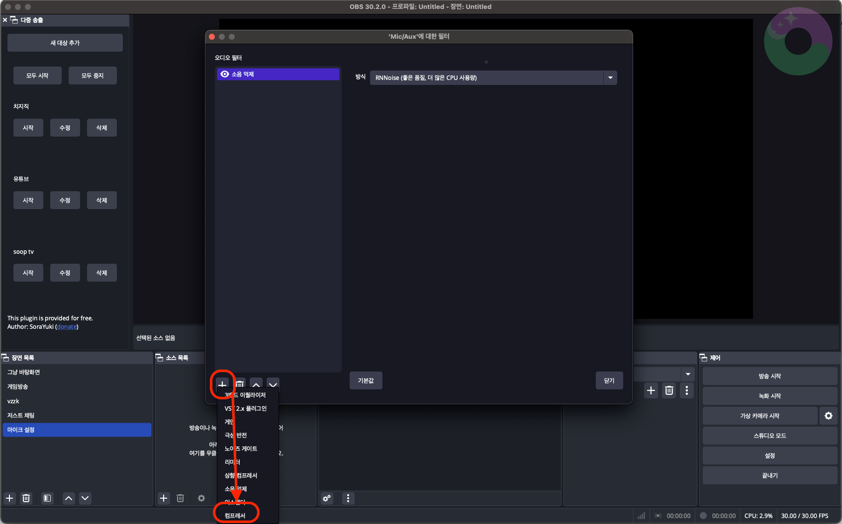 OBS에는 소리를 조절하는 다양한 필터가 있어요. 필터를 추가하는 방법부터 알려드릴게요.