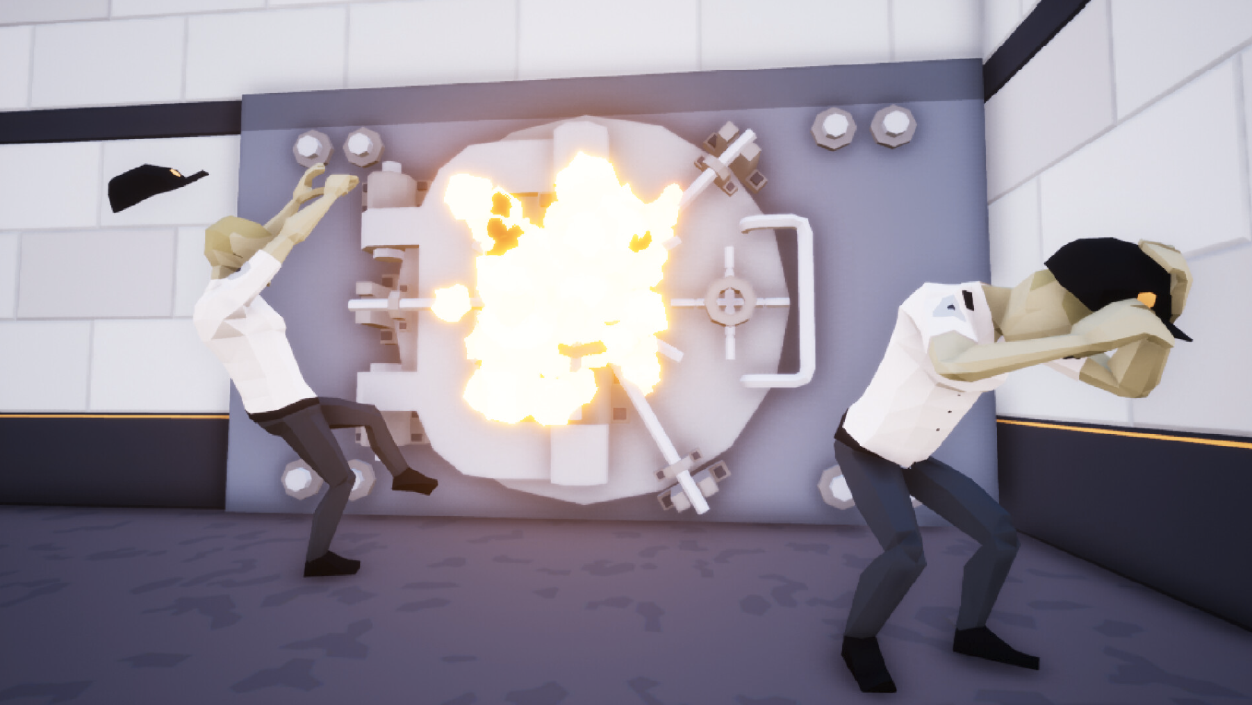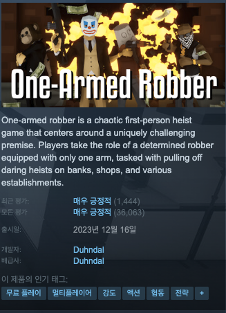 한쪽 팔만 사용하여 친구와 함께 은행을 터는 게임이에요.