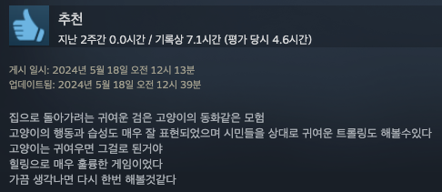 고양이 좋아하신다면 정~말 좋아하실 게임입니다.