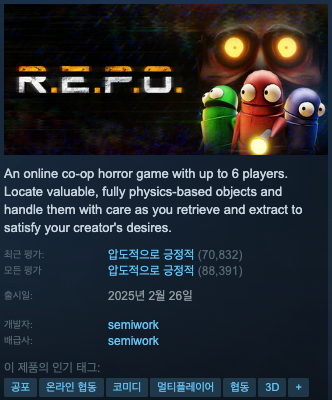스팀 협동게임, 스팀 공포게임, 리썰 컴퍼니, Repo 게임, 스팀 추천 게임, 친구랑 할만한 게임, 협동 플레이 게임, 공포 협동게임, 웃긴 스팀게임, 멀티 게임 추천, 스팀 갓겜, 파밍 게임, 리썰 게임 비슷한 거, 스팀 팀워크 게임, 귀신 나오는 게임, 스트레스 풀리는 게임, 요즘 뜨는 게임, 신작 스팀 게임, 저렴한 스팀게임, 인디 게임 추천, 스팀 게임 모음, 친구랑 할 게임, 무서운 게임 추천, 레포 게임, 귀중품 파밍 게임, 팀플레이 게임, 방탈출 느낌 게임, 리얼 공포 게임, 귀신 게임, 스팀 게임 소개