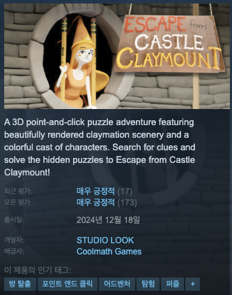 스팀 방탈출 게임, 무료 방탈출 게임, 스팀 무료 게임, 인디 방탈출 게임, 혼자 하는 방탈출 게임, 방탈출 추천, 미스터리 게임 추천, 스토리 있는 게임, 스팀 스토리 게임, 공포 방탈출 게임, 영화 같은 게임, 몰입감 있는 게임, 단서 찾는 게임, 수사 게임, 탐정 게임, 오로라 힐스, aurora hills, 찰흙 게임, claymount 게임, escape from castle claymount, 창의적인 인디게임, 스팀 인디 추천, 조용한 게임 추천, 무료 인디 게임, 맥북 가능한 게임, 윈도우 맥북 게임, 감성 게임 추천, 퍼즐 게임 추천, 찰흙 방탈출, 분위기 좋은 게임