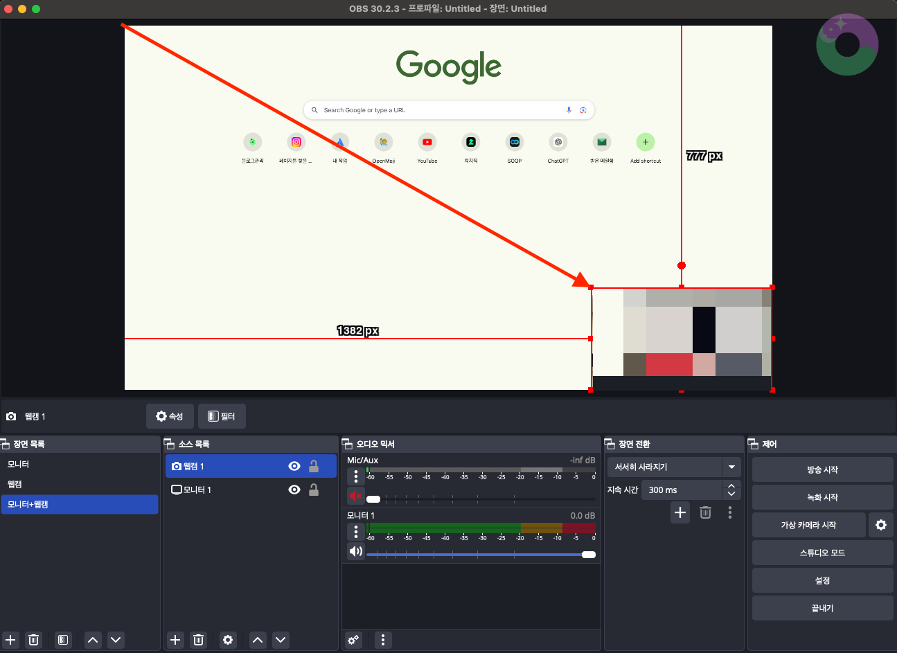 ⚙️아주 쉬운 OBS 초기 시작 세팅하는 방법 - 모니터, 웹캠 동시 송출하기 | 웹캠 크기 줄이기