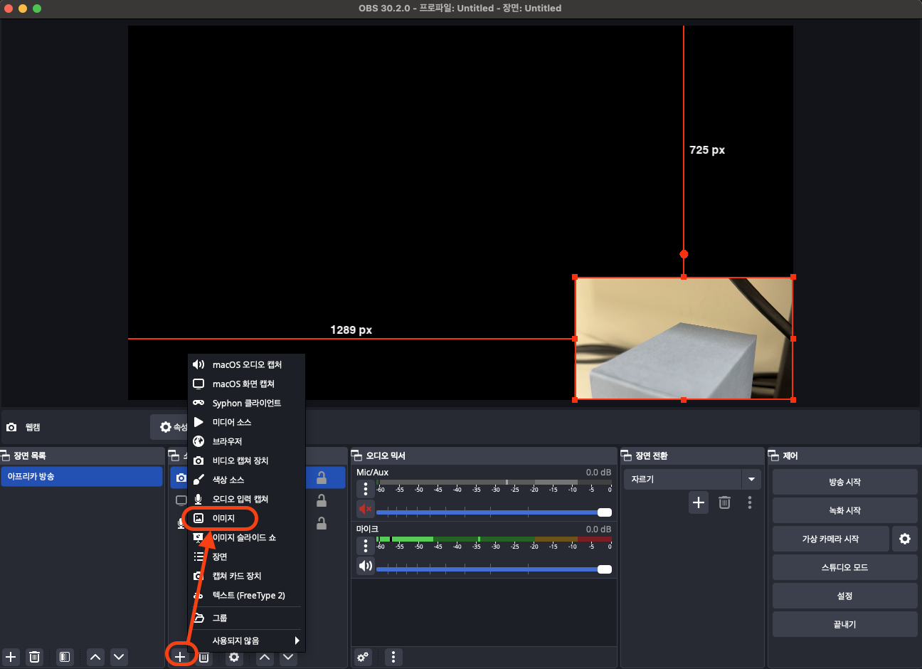 소스 목록 👉 + 👉 이미지