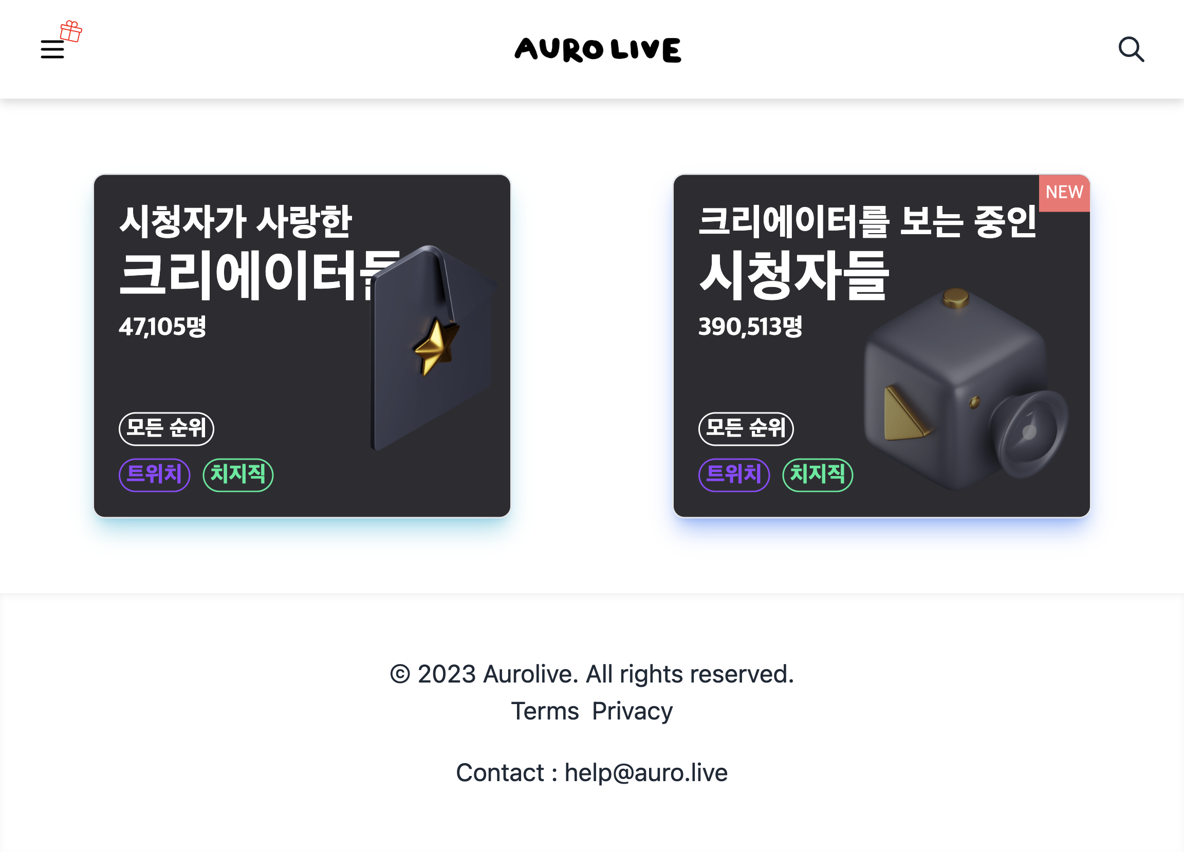 오로라이브 ( https://auro.live )가 이번에도 새로운 기능🎁 을 가지고 나왔습니다~